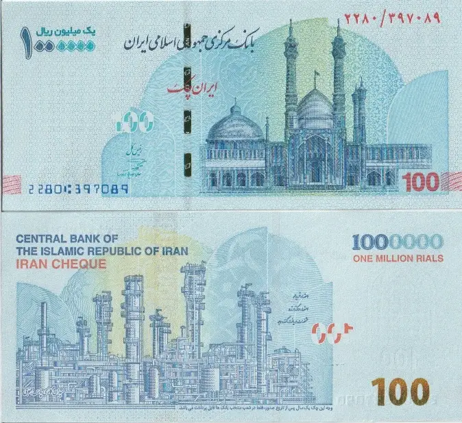 Good used Condition One Hundred Millions One Million Denomination Rial ( 100 Bills X 1000000 IRR ) Free Shipping.